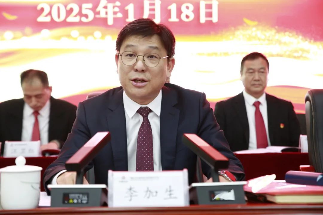 公司總經理、黨委副書記李加生在會上作了題為《勇擔使命? 堅定進取? 再攀新高 奮力向中國第一 世界一流銻業公司邁進》的行政工作報告,對2024年各項工作進行了全面回顧,指出了工作中存在的問題和不足,認真分析了當前公司發展面臨的形勢和任務,從收入利潤、產品產量、產品購銷、安全環保、職業健康、重點項目、民生福祉七個方面提出了2025年公司生產經營目標,對做好2025年工作作了系統部署。