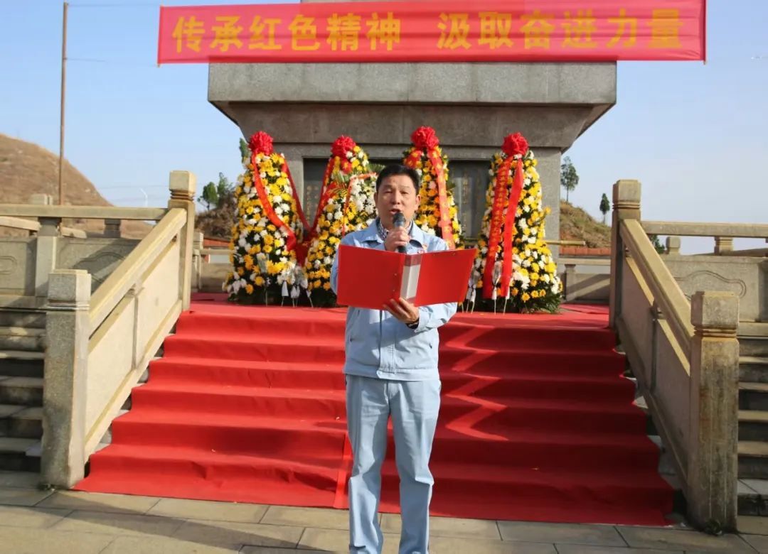 ????公司總經理、黨委副書記李加生將一束白菊輕放在紀念碑前,“我們要深切緬懷革命先烈的豐功偉績,感恩歷代錫礦山共產黨人的熱血奉獻,把錫礦山紅色精神傳承好,轉化為永不枯竭的前進動力。”他的發言擲地有聲。